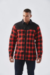 Classic plaid design combined with solid panels, highlights this fleece-lined, breathable cotton-blend thermal shirt. Featuring snap pockets, center front and cuff closures for added styling and easy use.